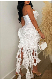 SEXY SOLID MINI TUBE DRESS OFFSHOULDER FRINGE