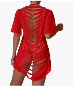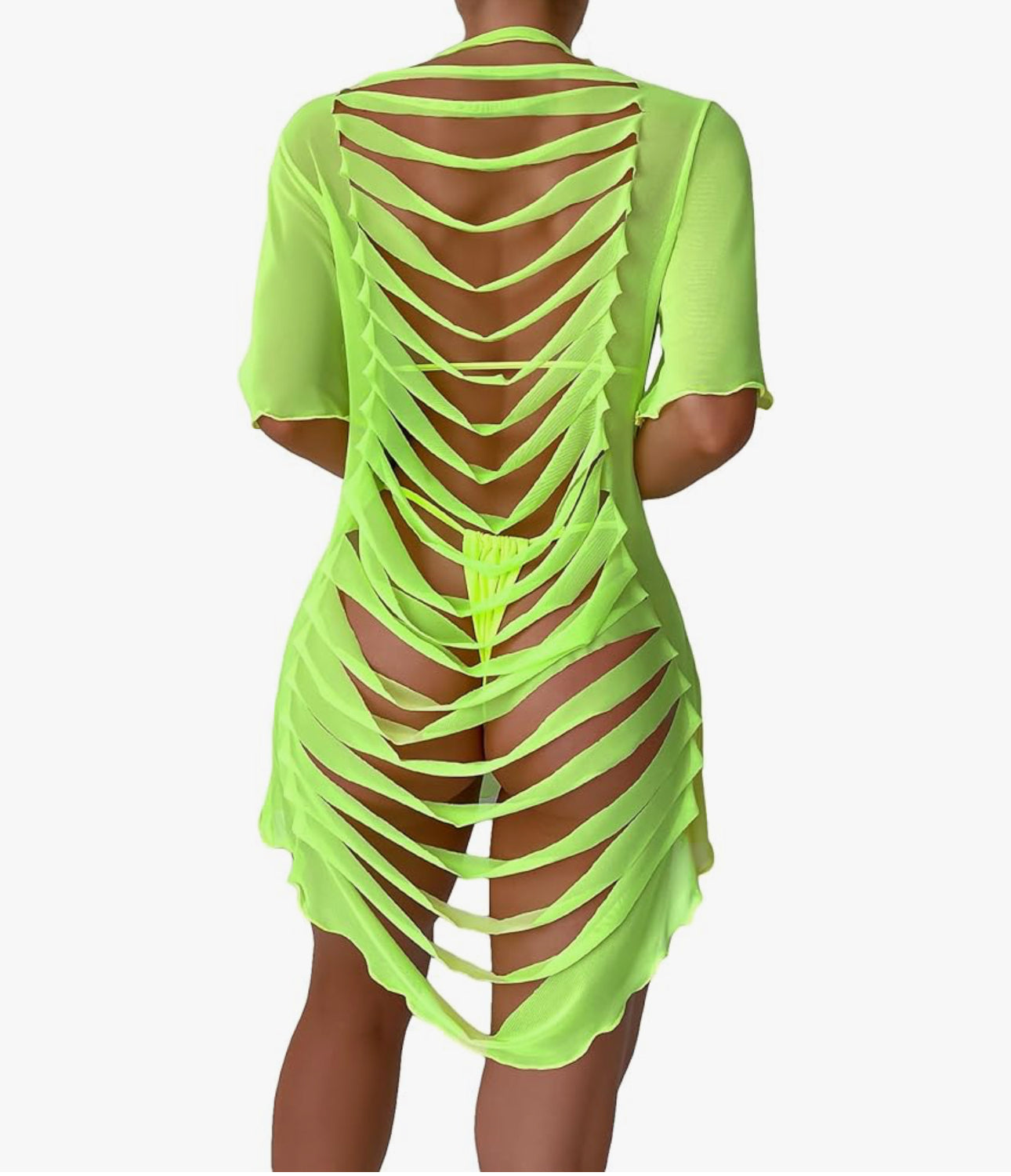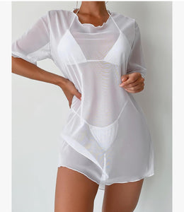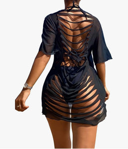 Ocean Mesh Bathing Suit Cover Ups Ripped See Through Swimsuit Short Beach Dres