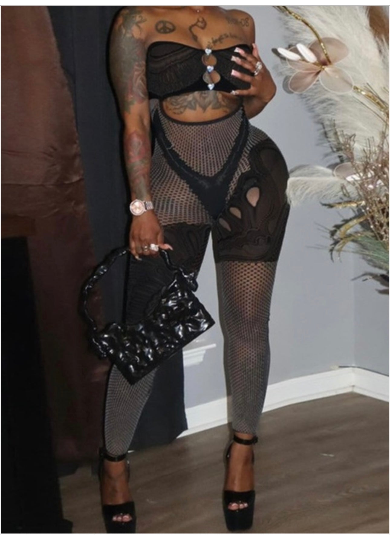 Strapless Cutout Bodycon Jumpsuits, Mesh Lace Sheer Sexy Jumpsuits, See Through Mesh Keyholes Bodycon Jumpsuit.A Daring And Stylish Cutout Sleeveless Mesh Jumpsuit That Showcases Your Figure With Its Bold Design. Perfect For A Night Out Or A Fashion-Forward Event, This Jumpsuit Combines Edginess With Elegance.