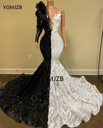 Black Sequins Evening Dresses For Women Party Sparkly Slit Prom Dress Long Sleeve Party Gown robe