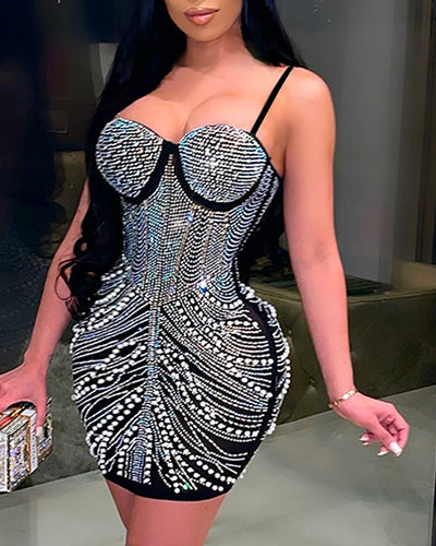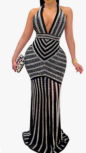 Womens Sexy Glitter Rhinestones See Through Sheer Mesh Club Bodycon Maxi Dress