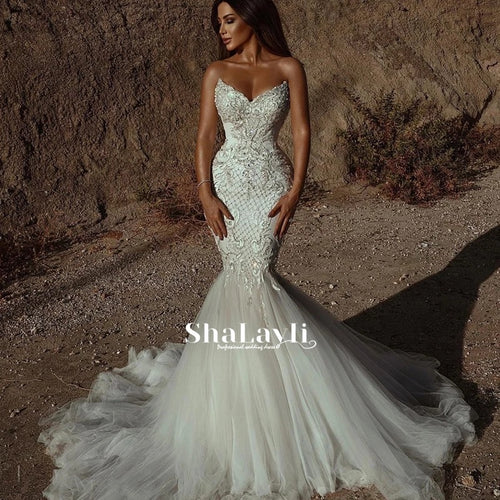 2020 African Wedding Dresses Sweetheart Lace Mermaid Plus Size Bridal Gowns Lace Up Tiered Sweep Train Wedding Vestidos