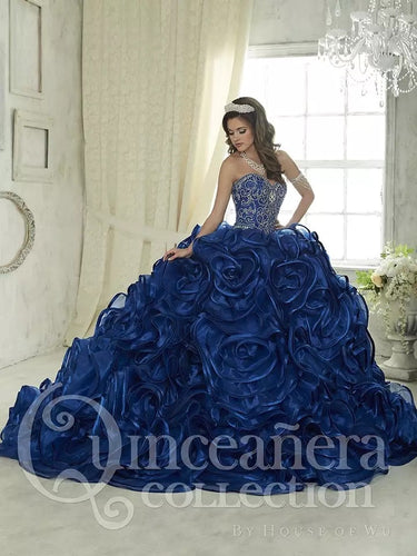 Royal Blue Quinceanera Dresses Ball Gown Sweetheart Beaded Crystal Ruffles Skirt