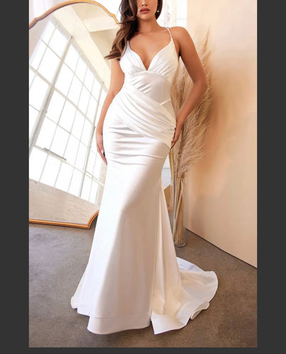 Alluring Open Back Stretch Satin Mermaid Gown
