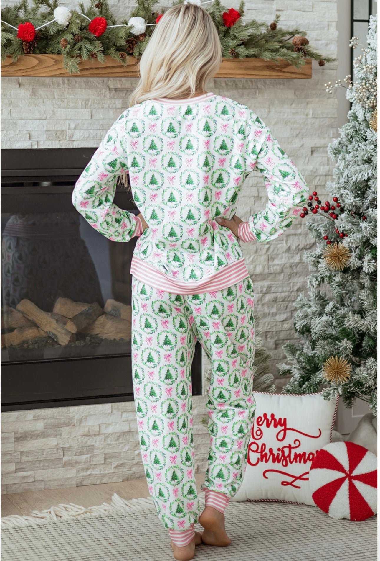 Get Cozy This Holiday Season With This Pants Set. Featuring A Festive Christmas Tree Print And Playful Contrasting Stripes, This Set Brings Cheerful Comfort To Your Lounging Moments. The Soft, Breathable Fabric Makes It Perfect For Relaxing At Home Or Holiday Movie Marathons. Embrace The Season In Style While Keeping Cozy And Cute! Polyester/Spandex