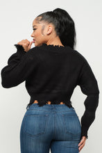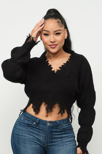 BUBBLY SLEEVE DISTRESS SWEATER TOP