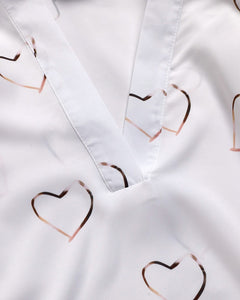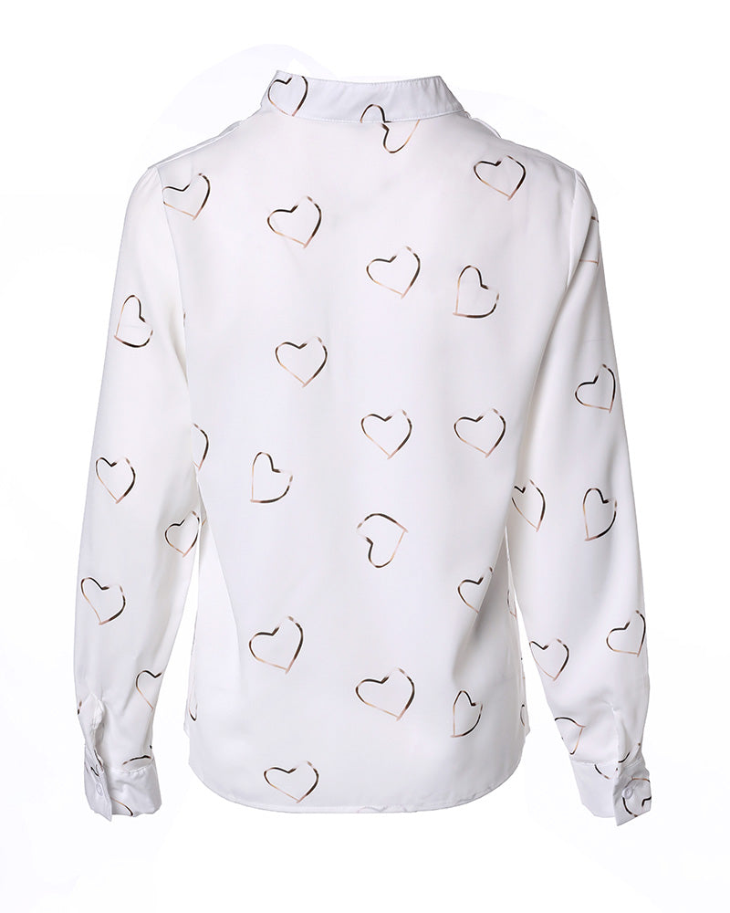 Heart Print V-Neck Long Sleeve Casual Top