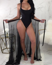 Solid One-Piece /w Tied Cover Up Swimsuit